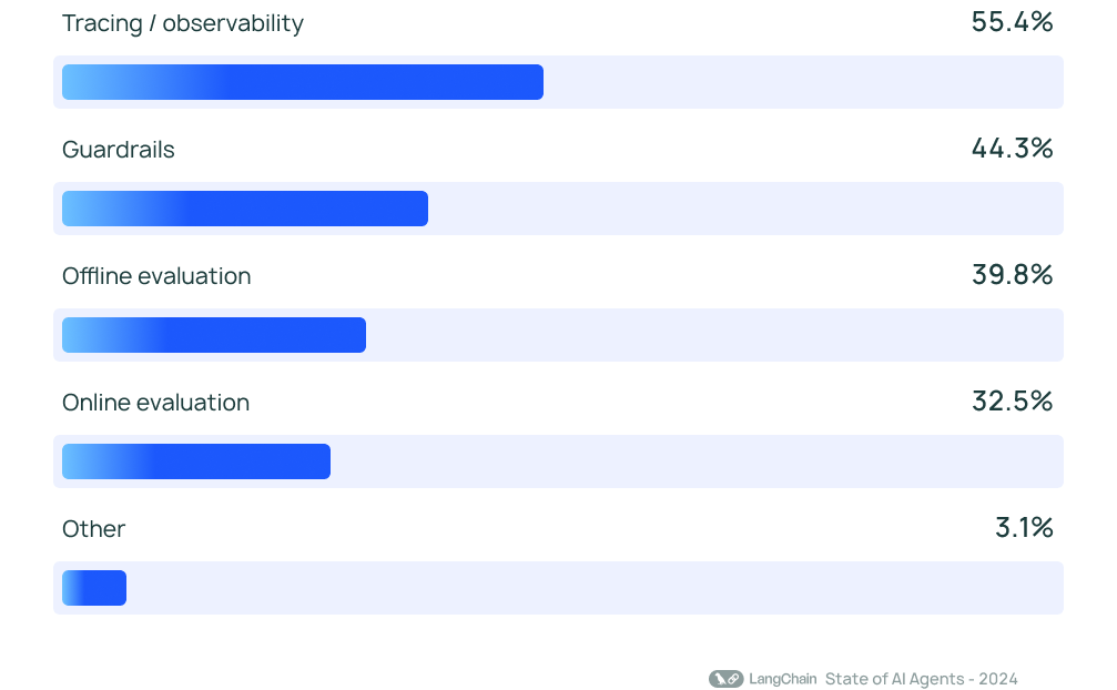 With great power comes great responsibility — or at least the need for some brakes and controls for your agent. Tracing and observability tools top the list of must-have controls, helping developers get visibility into agent behaviors and performance. Most companies are also employing guardrails to keep agents from veering off course.